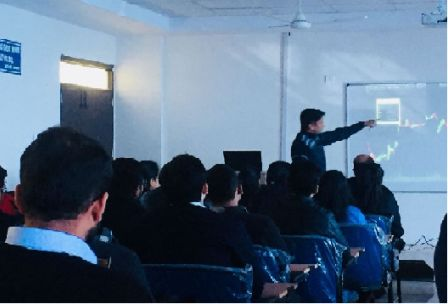 Mr.. Alok Sharma briefed the students about the Finance Industry in general, followed by Investment Management industry in particular.  Mr. Sharma described the critical parameters of financial control in any industry and also the Economy. Mr. Sharma described various roles in Investment and Risk Management domains and also touched upon the Certification and Internship offerings of industry relevant training programs.